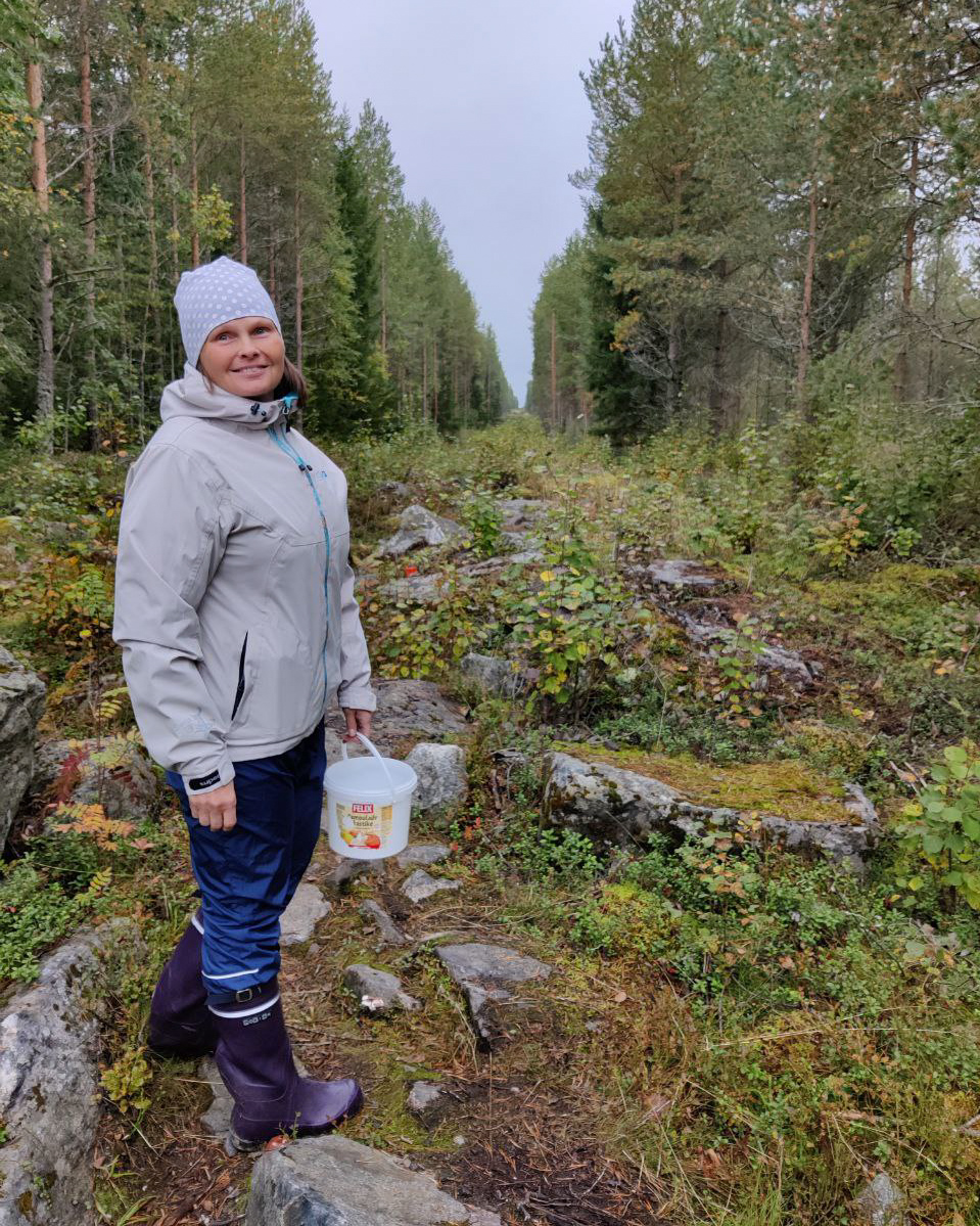 Päätimme hakea puolukat Hepo-Ventusnevalta, joka nimestään huolimatta on aika kuivaa ja kallioista. Matkalla parhaille puolukkapaikoille, bongasin matkalta runsaasti pieniä voitatteja. Tuli omat lapset mieleen! Heidän herkkuaan oli ”tattileivät”, eli leipä jonka päällä oli voissa paistettuja voitatteja. Tuntui, että oli pakko poimia tatit mukaan. Onneksi olin ottanut mukaan muovipussin, koska toiveissa oli kerätä myös jonkin verran pihlajanmarjoja.